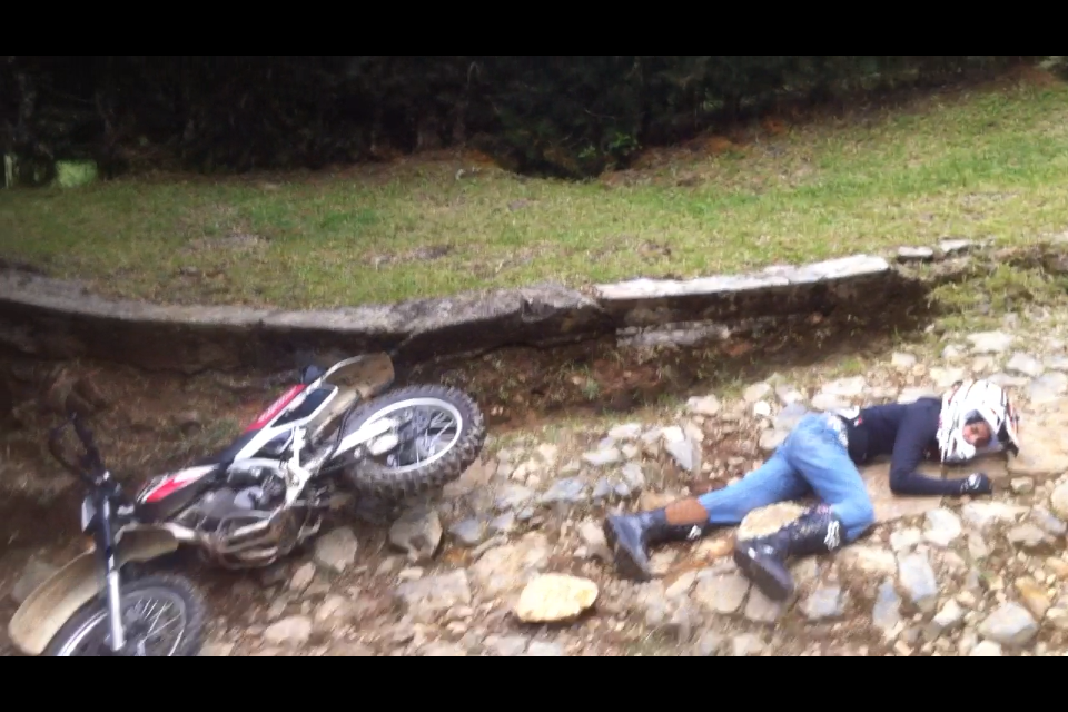 Ese día dejamos las motos en la finca de Juanar, y volvimos al otro día, para montar un poco más, pues fuimos por la vía que conduce al Parque Arvi por un destapado, hasta las partidas para Santo Domingo, y regresando por una carretera empinada y un tanto mala fue la primera caída de consideración de Daniel.