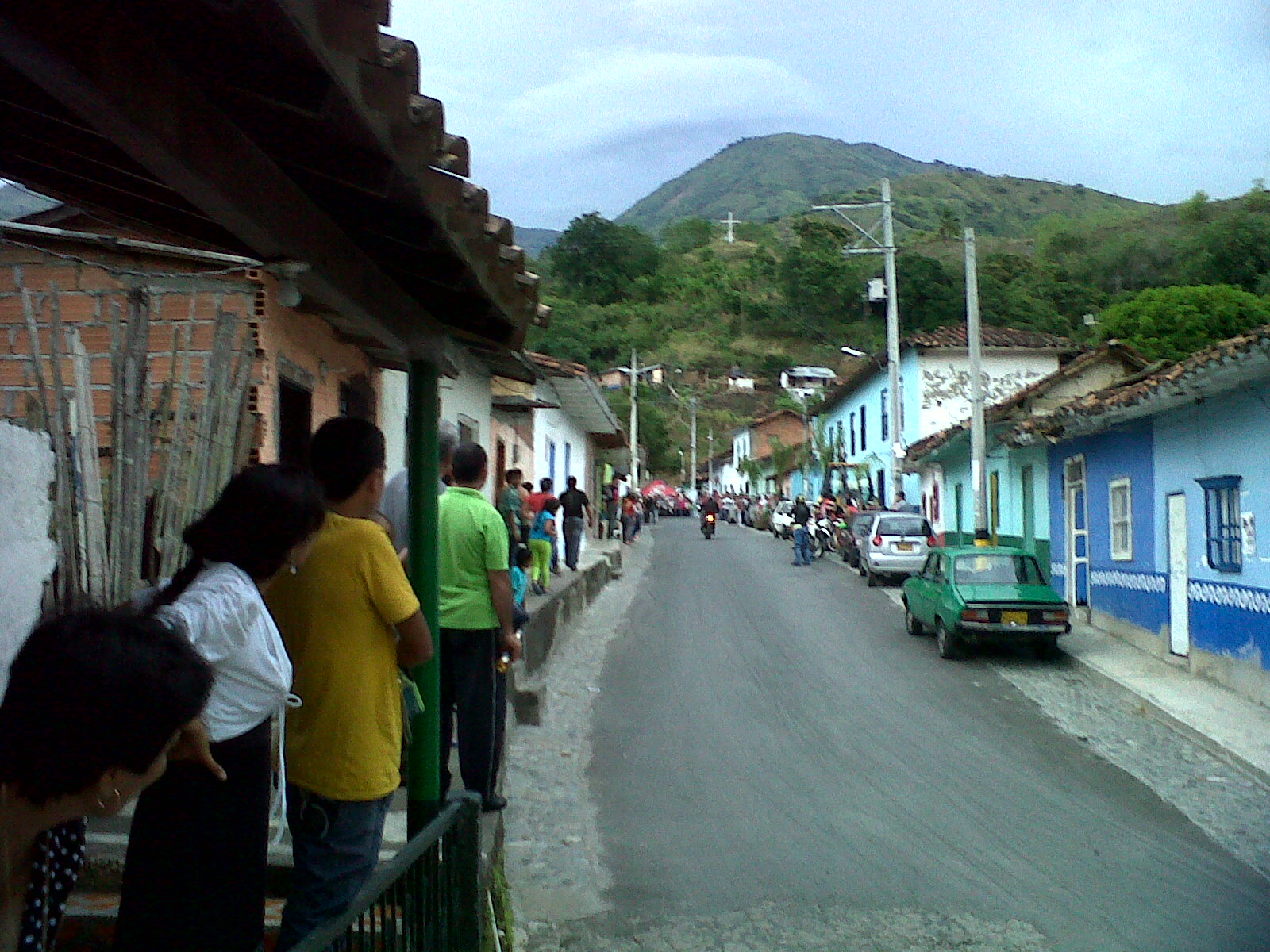 La idea de salir por Bolombolo fue para sacarle el cuerpo al tráfico de la vía normal a la pintada. La primera parada la realizamos en el alto de minitas, donde nos tomamos un jugo de naranja y repasamos de nuevo el checklist de manejo, esto viene al caso ya que cuando arrancamos ahí adelante, fue el primer susto, se le resbaló la llanta delantera en un arenero; después de eso llegamos sin problema a Bolombolo, donde tanquiamos (repostamos gasolina), y de ahí para La Pintada, donde llegamos a almorzar a eso de las 12:00. Salimos como a la 1:00 PM, para Supía donde volvimos a tanquear y nos fuimos por ahí ya que la carretera es más entretenida. Todo transcurrió tranquilamente, llegamos a la entrada para La Virginia a eso de las 4, tomamos algo y luego paramos de nuevo donde se une la carretera con la que va para Cartago, comimos piña y salimos para Santa Rosa, con tan mala suerte que por Pereira nos cogió un aguacero de padre y señor mío, paramos a escamparnos y llegamos a Santa Rosa a las 6:00 PM, guardamos la moto y a comer Chorizo Santarosano, y a descansar.