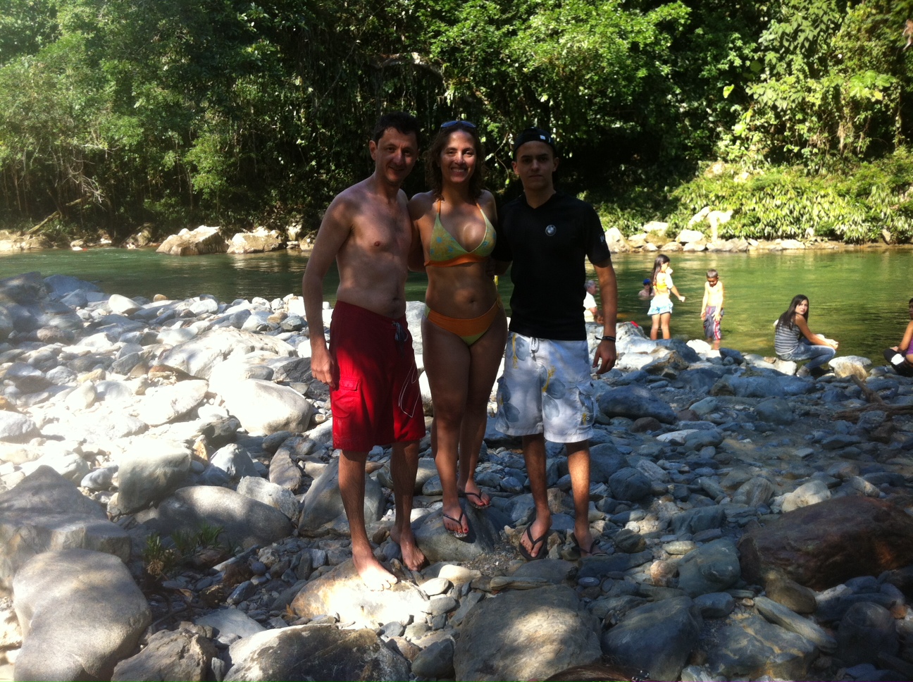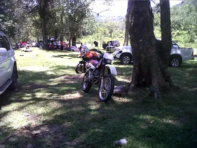 Desafortunadamente había un culto evangélico y estaban en tremendo sermón, así que decidimos salir para otro charco más arriba, y Guaca nos iba guiando por un caminito, con tan buen sentido de la ubicación que fuimos a salir al lugar donde Felipe había dejado el carro parqueado (esperamos que no corra así en los Rallies), y pues ya estando ahí subimos a las cascadas.