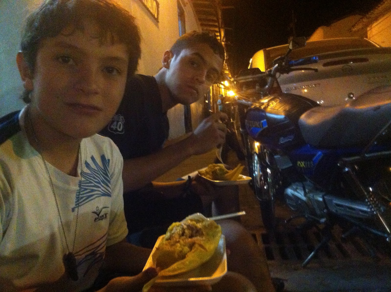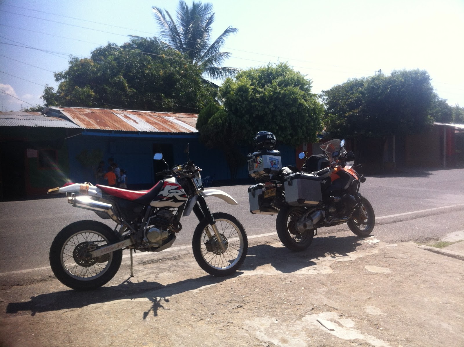 Salimos de medellín a eso de las 7:30 de la mañana, el clima estaba perfecto, hicimos la primera parada tan pronto termina la doble calzada de Barbosa para hacerle un par de ajustes menores a la XR y comer algo, después de terminar ahí continuamos hasta cisneros donde tuve que parar a tanquear mientras mi papá y mi hermano pararon a comer algo. Después de la parada continuamos hasta unos cuantos km de puerto berrío donde de nuevo tanquee mi moto y un poco más adelante paramos en un restaurante de carne de búfalo para el almuerzo, ahí nos encontramos a otro par de moteros que venían desde la Guajira en una super tenere y una vstrom 1000. Después de terminar el almuerzo seguimos y más adelante paramos de nuevo a borde de carretera a descansar, después empezamos la subida para bucaramanga, más arriba paramos para ver la obra de la hidroeléctrica que están construyendo, después llegamos al alto y empezamos a bajar por una vía muy similar a las palmas pero con la diferencia que había muchos letreros en el borde de la carretera que decían, cuidado motocicletas superficie resbalosa, a eso de las 5:30 finalmente llegamos a Girón ahí parqueamos en la plaza para buscar alojamiento, después de que encontramos donde dormir y de estar bien acomodados salimos a buscar comida, y dado que no encontramos ningún restaurante decente terminamos comiendo “ayacos” en la calle al lado del hotel, después de esto nos fuimos a dormir.