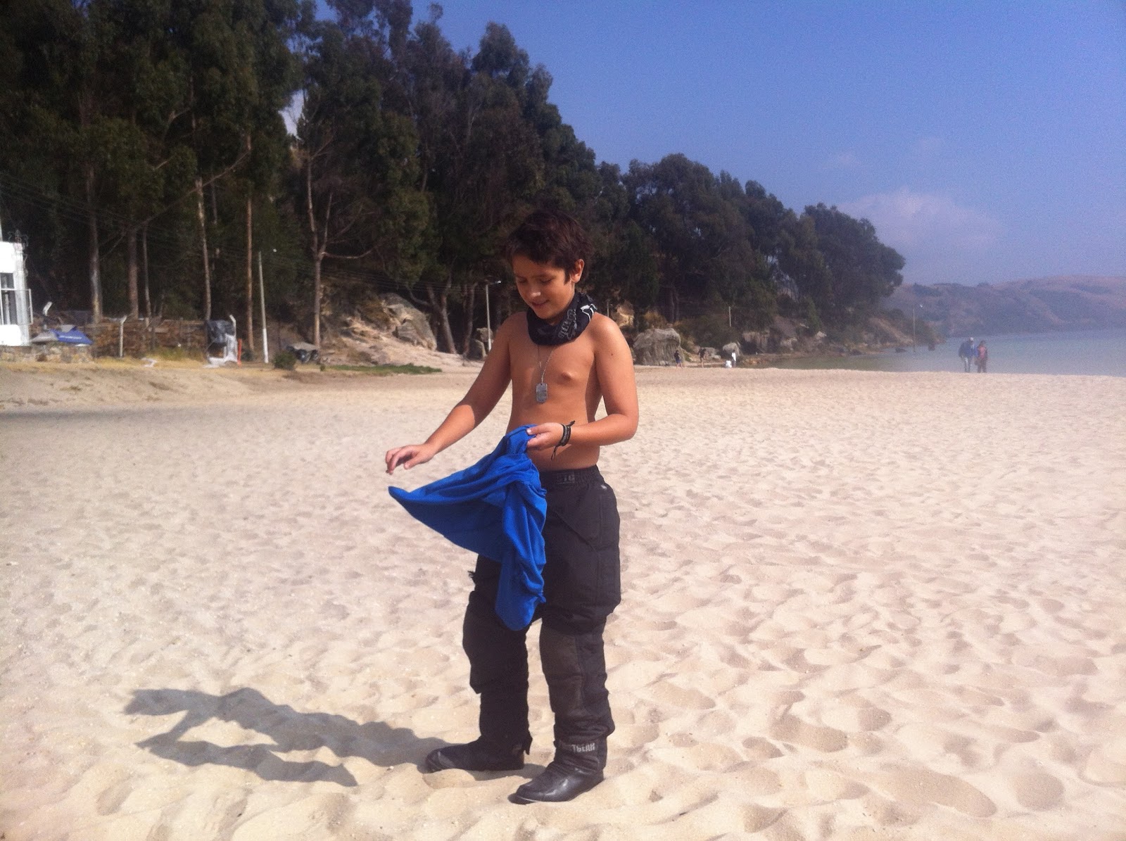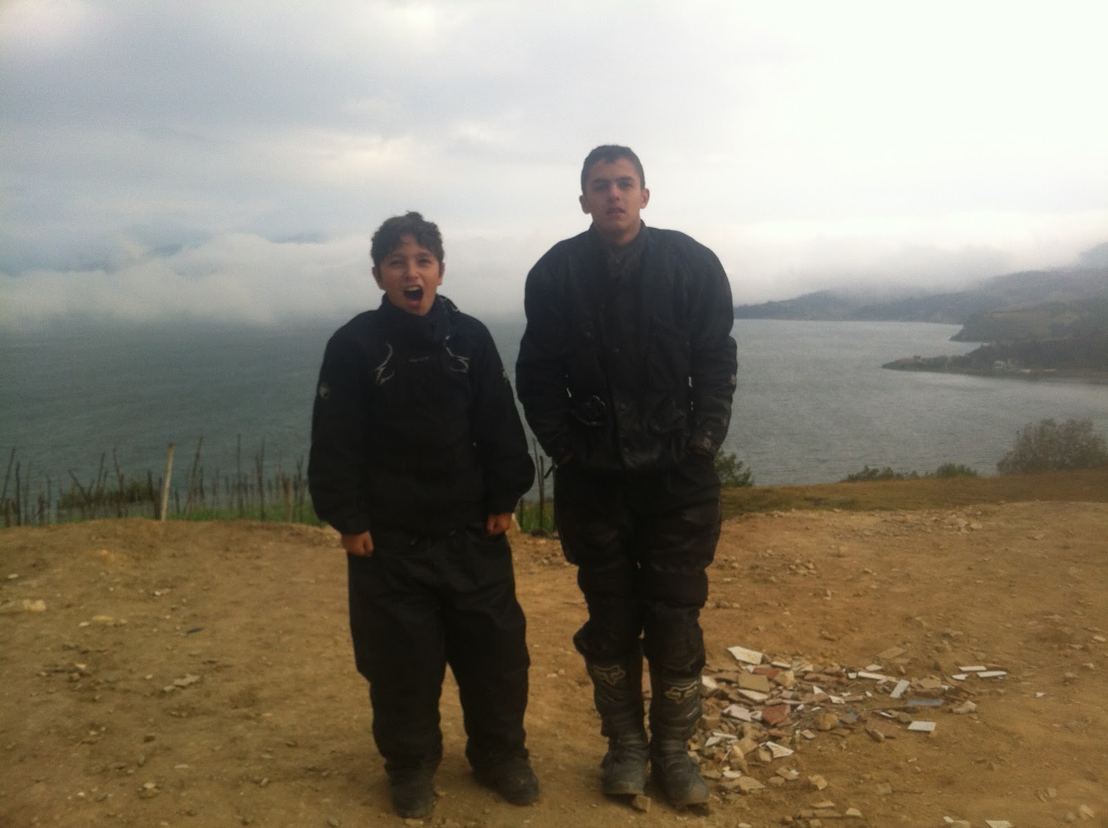 Cuando volvió mi papá salimos hacia la laguna de Tota, después de almorzar en Tunja seguimos hacia Tota por Sogamoso. Paramos a ver la laguna, que vista más espectacular, después de eso un señor nos recomendó que tomáramos un camino destapado hasta Aquitania que por ahi encontraremos alojamiento, después de unos 10 km sin encontrar donde dormir nos resignamos y nos devolvimos a un alojamiento que ya teníamos visto, luego de subir a la habitación y arreglarnos volvimos a bajar a buscar un café y comida, luego subimos y pedimos que nos prendieron la chimenea un par de veces, y después de que se apago desistimos y nos aguantamos el frío para dormir.