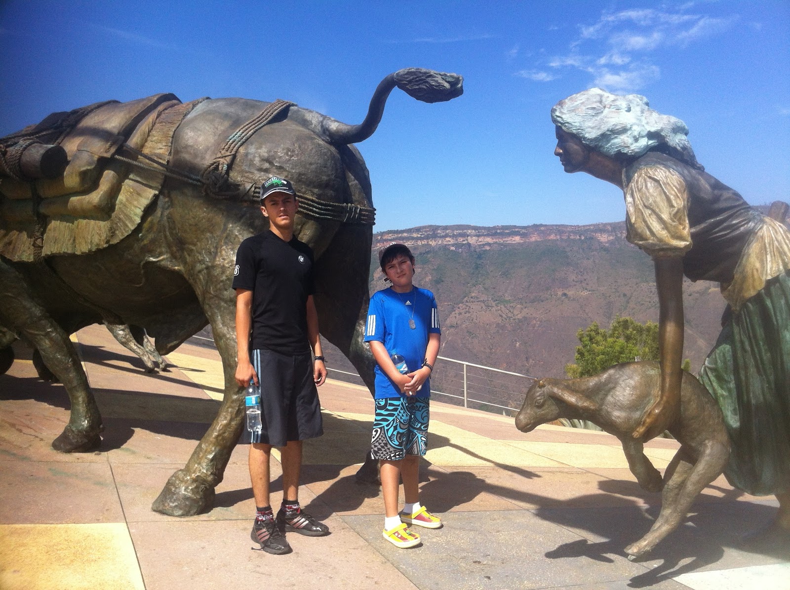 Nos despertamos algo tarde y después salimos a buscar desayuno, inmediatamente salimos descubrimos que la carretera era muy entretenida aunque un poco llena de camiones, nos tardamos menos de 2 horas en llegar hasta el parque del chicamocha, cabe resaltar que 100 metros antes del parque trate de hacer una pase a un carro sin darme cuenta que el carro de atrás estaba tratando de adelantar también, estuve a menos de 10 cm de un choque. Ya en el parque del chicamocha nos colocamos la ropa casual y nos dedicamos a ver que tenía el parque, la primera atracción interesante fue una estatua dedicada a la revolución de los comuneros, depues de ahi fuimos al columpio gigante, luego a la parte más alta del parque, que es un mirador, de ahi manuel se tiró en canopy, más tarde montamos los 3 en buggys de arena, después de terminar salimos para el stand del parapente ya que manuel se quería tirar, después de un rato de espera, el parapentista determinó que no era seguro volar por lo que se cancelo, entonces cogimos el teleférico para buscar almuerzo al otro lado del parque. Almorzamos en un restaurante peruano y con esto dimos por concluida la estadía en el parque, esa noche llegamos sin contratiempos a barichara, ahí nos quedamos en un hostal llamado la casa de Hercilia (muy bacano por cierto), después de dejar nuestras cosas salimos a dar un recorrido y a buscar comida, terminamos comiendo en un lugar llamado la puerta, muy buena la comida y a mi ya me empezaba a molestar mi estómago, de ahí a dormir.