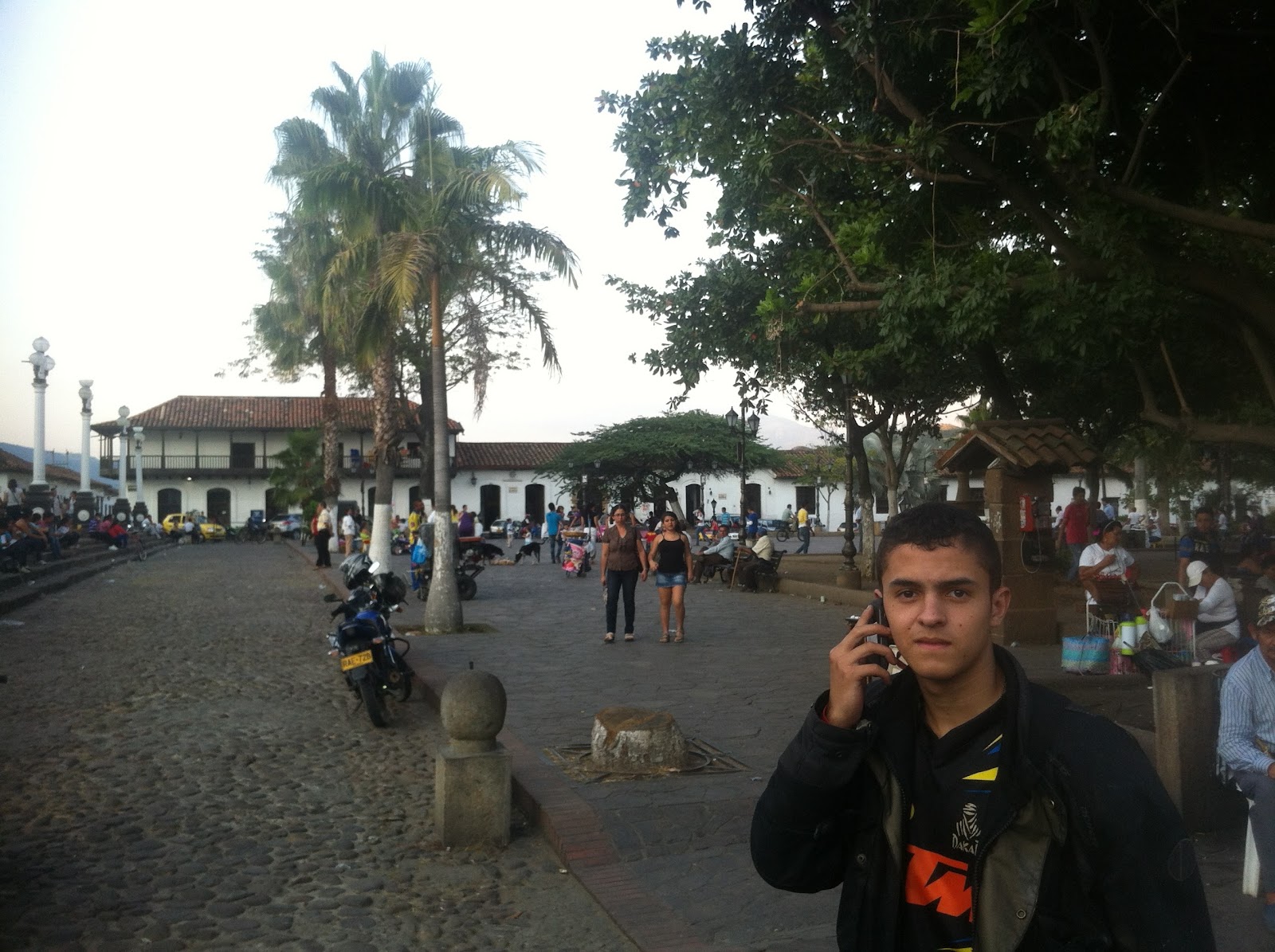 Nos despertamos algo tarde, desayunamos en el mismo hostal, que buena decision muy buena la comida, arrancamos para Villa de Leyva, la primera parada fue en San Gil para que le polarizaran la visera del casco a Manuel, después de mucho rogar, finalmente los santandereanos perezosos (Almenos estos dos) accedieron a trabajar y fue todo un éxito, después de 1 hora en esas seguimos, después de 60  km paramos en un restaurante a almorzar, y luego del almuerzo seguimos con fuerza renovada, volvimos a parar a unos 30 km del destino en Arcabuco para hacerle el muy necesario cambio de aceite a mi moto, y aunos cuantos kilometros entramos a las cascadas de la Periquera, tomamos un par de fotosy continuamos, despues de llegar a Villa de Leyva nos dedicamos a buscar hospedaje, a mi el dolor de estómago no me dejo buscar, finalmente mi papá encontro un lugar a 3 cuadras del parque - Estancia NUEVA GRANADA. Después de que nos acomodamos y descansamos un rato salimos a buscar comida, ahí finalmente decidí que no me aguantaba el dolor que debía ir a un hospital, durante la comida nos encontramos con Alfredo Gómez (Quien nos vendió a Rayo) y con Juan David Vergara... un ex pragma, cuando fuimos al hospital me practicaron unos exámenes y determinaron que me debía de quedar hospitalizado por la noche y ahí termino mi día.